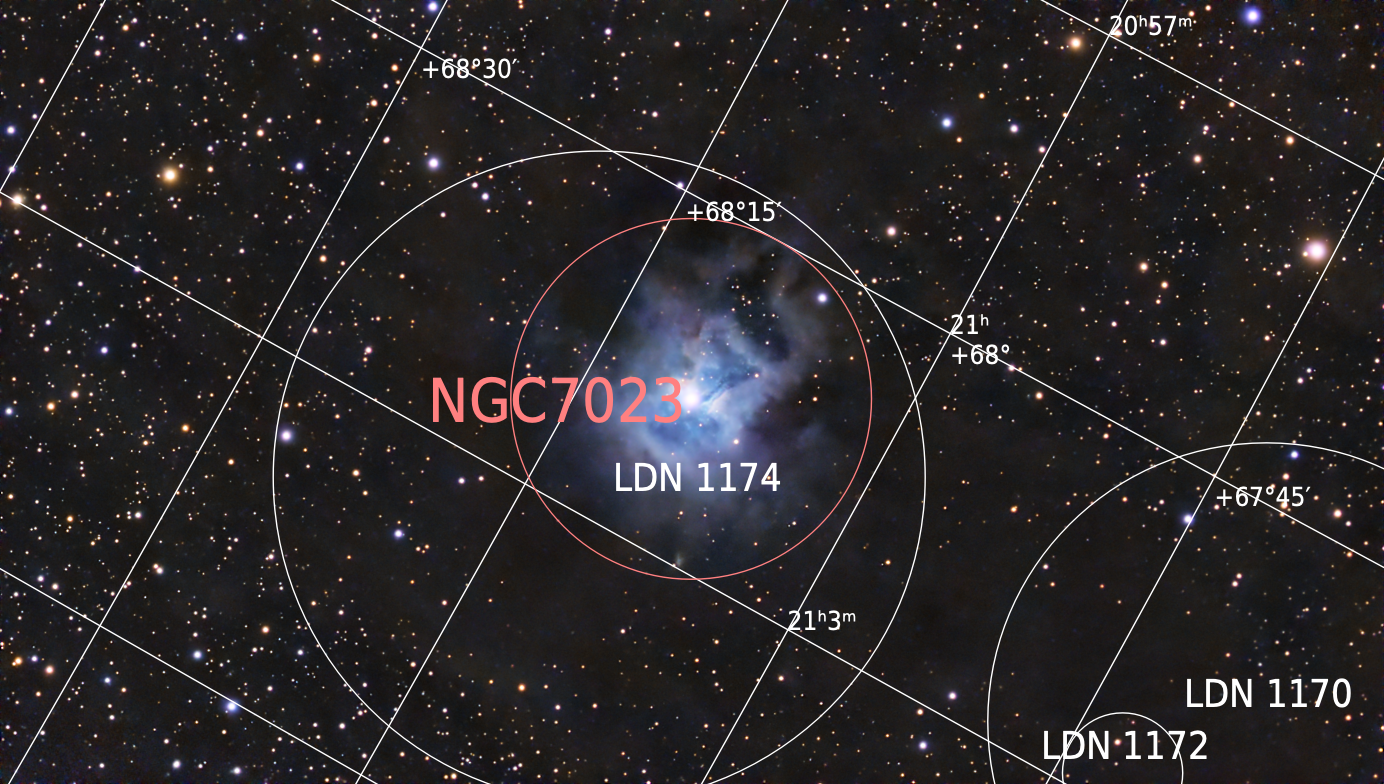 NGC 7023, aussi appelée la nébuleuse de l’Iris ou encore Caldwell 4, est une nébuleuse par réflexion renfermant l’amas ouvert OCL 235 située dans la constellation du Céphée.